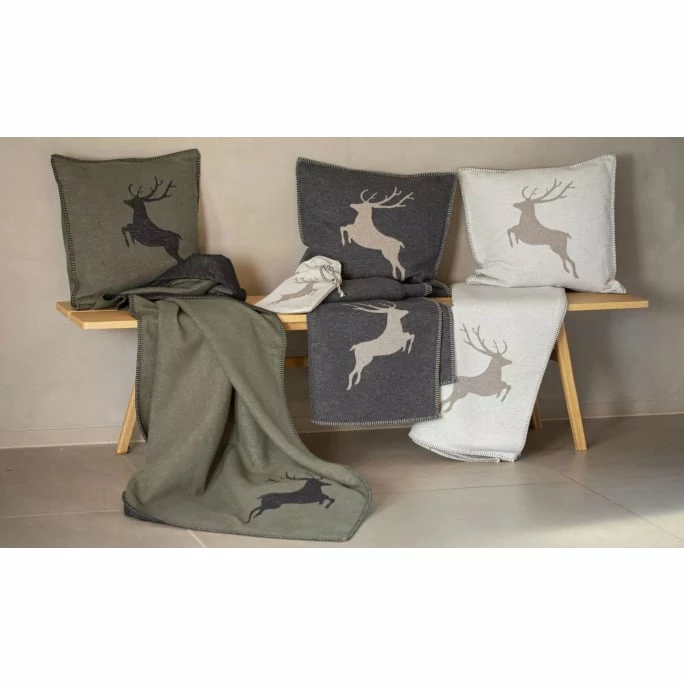 - zweifarbige Kissenhülle mit Hirsch-Motiv