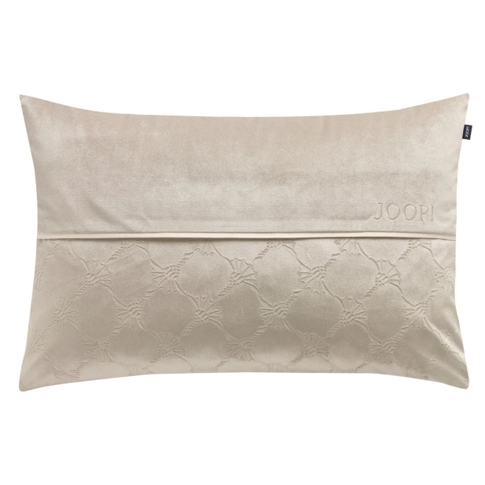 Mit der hochwertigen Deko-Kissenhülle Scene von JOOP! holen Sie sich den puren Luxus in Ihre Räumlichkeiten. Der geschmackvolle Bezug beeindruckt durch den modernen Wende-Look. Die Vorderseite ist im unteren Bereich mit einer dekorativen Kornblumen-Musterung geprägt. Für die optische Teilung sorgt die feine Satinbiese, wobei der obere Bereich nur mit dem klassischen JOOP! Schriftzug verziert ist. Die glatte Rückseite präsentiert sich im schlichten, einfarbigen Design. Das weiche Kissen ist aus 100% Polyester bestehend aus Microvelvet in Echt-Samt-Optik gefertigt und mit einem praktischen, verdeckten Reißverschluss ausgestattet. Hiermit ist ein bequemes Ab- und Beziehen jederzeit möglich. Machen Sie es sich mit der extravaganten Deko-Kissenhülle Scene im Wende-Design von JOOP! gemütlich und genießen Sie den angenehmen Komfort. Wir bieten Ihnen den exquisiten Bezug in verschiedenen Farbvarianten in unserem AMBIENDO Shop an. Überzeugen Sie sich selbst!