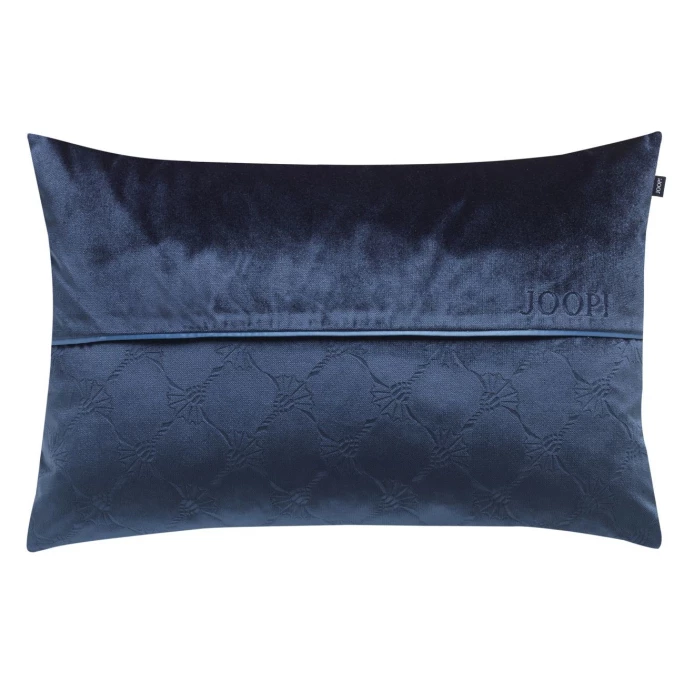 Mit der hochwertigen Deko-Kissenhülle Scene von JOOP! holen Sie sich den puren Luxus in Ihre Räumlichkeiten. Der geschmackvolle Bezug beeindruckt durch den modernen Wende-Look. Die Vorderseite ist im unteren Bereich mit einer dekorativen Kornblumen-Musterung geprägt. Für die optische Teilung sorgt die feine Satinbiese, wobei der obere Bereich nur mit dem klassischen JOOP! Schriftzug verziert ist. Die glatte Rückseite präsentiert sich im schlichten, einfarbigen Design. Das weiche Kissen ist aus 100% Polyester bestehend aus Microvelvet in Echt-Samt-Optik gefertigt und mit einem praktischen, verdeckten Reißverschluss ausgestattet. Hiermit ist ein bequemes Ab- und Beziehen jederzeit möglich. Machen Sie es sich mit der extravaganten Deko-Kissenhülle Scene im Wende-Design von JOOP! gemütlich und genießen Sie den angenehmen Komfort. Wir bieten Ihnen den exquisiten Bezug in verschiedenen Farbvarianten in unserem AMBIENDO Shop an. Überzeugen Sie sich selbst!