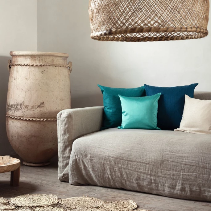 Sie mögen es zeitlos im Look und hochwertig im Material? Dann ist die SILK Kissenhülle von Linum genau die Richtige für Sie! Aus reiner, indischer Dupionseide gefertigt, begeistert der Bezug durch ein unifarbenes Dessin, eine lebendige Oberfläche mir dezenter Struktur und einen feinen Glanz. Der verdeckte Reißverschluss und das eingenähte Linum Label runden das optische Gesamtbild dabei perfekt ab. Egal ob im Wohn- oder Schlafbereich: SILK passt einfach immer und bildet vor allem mit matten und gröber strukturierten Kissen, wie dem Linum AMALFI oder CALCIO Leinenkissen einen wundervollen Kontrast. Da es sich bei Seide um ein Naturmaterial handelt, sind Abweichungen in der Oberflächenstruktur ganz normal und machen jedes SILK Kissen zu einem echten Unikat. Lassen Sie sich von der zarten Haptik und dem eleganten Look begeistern und setzen besondere Akzente mit dem SILK Kissenbezug von Linum.