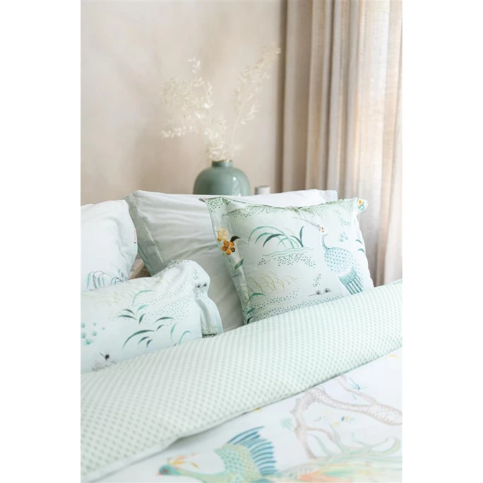In dezenten Farben und mit einem wunderschönen Motivdruck auf der Vorderseite präsentiert sich das Zierkissen Japonica von Pip Studio. Egal ob im Schlaf- oder im Wohnzimmer: Das Japonica Kissen des niederländischen Labels Pip Studio sorgt nicht nur für eine bequeme Auszeit, sondern punktet auch noch durch ein wunderschönes Motiv-Dessin, Oxfordsaum mit Zierpaspel und praktischem Knopfverschluss. Die Rückseite präsentiert sich im Kontrast dazu in einem stilisierten Allover Bogenmotiv. Aus reiner Perkal-Baumwolle gefertigt, ist das Zierkissen durch die hochwertige Polyesterfüllung besonders weich, anschmiegsam und pflegeleicht. Der Bezug kann zur Reinigung problemlos in die Waschmaschine und anschließend in den Trockner gegeben werden. Und wenn Sie es gerne perfekt mögen, dann kombinieren Sie das bequeme Kissen doch einfach mit der passenden Bettwäsche oder den anderen Zierkissen aus der Japonica-Kollektion von Pip Studio und machen den einzigartigen Look perfekt. Lassen Sie sich von dem wunderschönen Dessin begeistern und machen sich oder einem lieben Menschen mit dem Japonica Zierkissen von Pip Studio eine besonders schöne Freude!